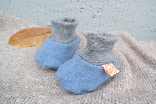 Warme Babyschuhe 3-6 / 6-12 M aus Upcycling Kaschmir & Wolle in Hellblau und Grau