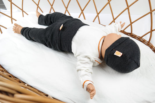Babyhose & Mütze für Neugeborene 50/56 aus 100 % geretteter Merinowolle in Dunkelgrau Anthrazit