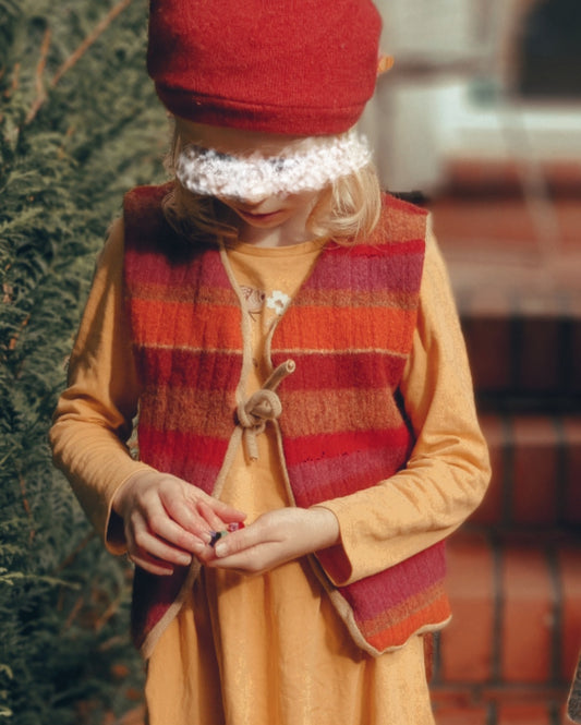 Wende-Weste für Kleinkinder aus Upcycling Wolle und Kaschmir – mitwachsend von Größe 80 bis 116 in Rot gestreift und Beerentönen
