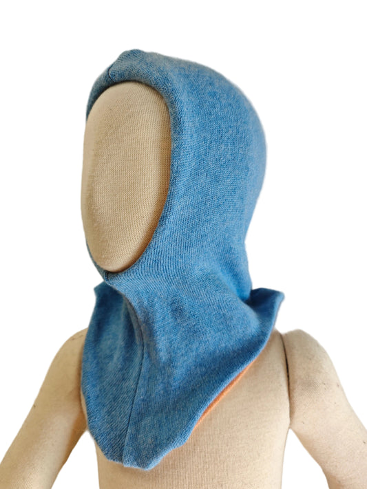 Wende-Schlupfmütze für Babys KU 43 - 48 aus Upcycling Seide & Kaschmir in Hellblau und Pfirsichorange