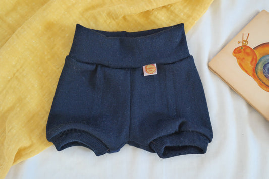 Kurze Hose Shorts für Babys 62/68 aus 100 % Upcycling Wolle in Dunkelblau