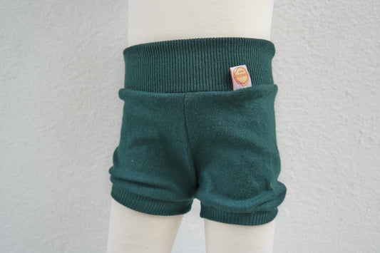 Kurze Hose Shorts für Babys 74/80 aus 100 % Upcycling Wolle in Tannengrün