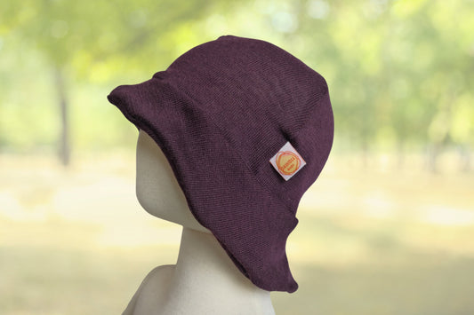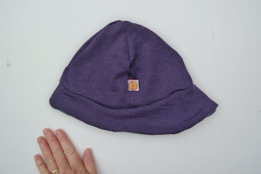 Sonnenhut Sommermütze Baby KU 39-41 mit Nackenschutz aus 100 % Upcycling Wolle in Pflaumenila