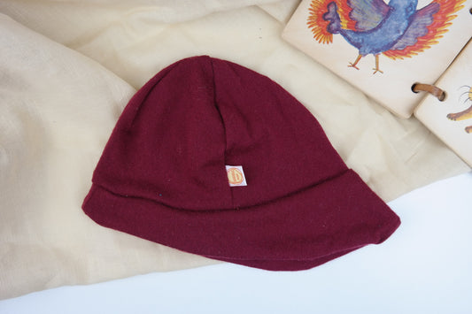 Sonnenhut Baby Kleinkind verschiedene Größen mit Nackenschutz aus 100 % Upcycling Wolle in Weinrot