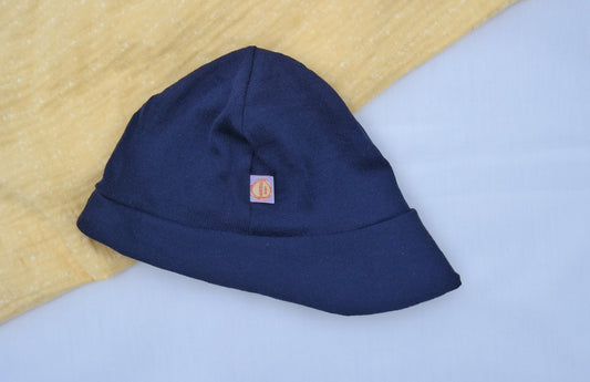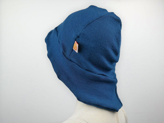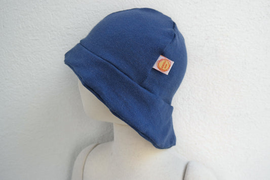 Sonnenhut Sommermütze Baby Kleinkind mit Nackenschutz aus 100 % Upcycling Wolle in Dunkelblau
