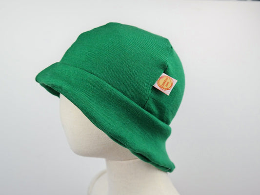 Sonnenhut Sommermütze Baby KU 42-45 & Kleinkind KU 50-54 mit Nackenschutz aus 100 % Upcycling Wolle in Grasgrün