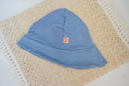 Sonnenhut Sommermütze Baby Kleinkind mit Nackenschutz aus 100 % Upcycling Wolle Seide in Himmelblau