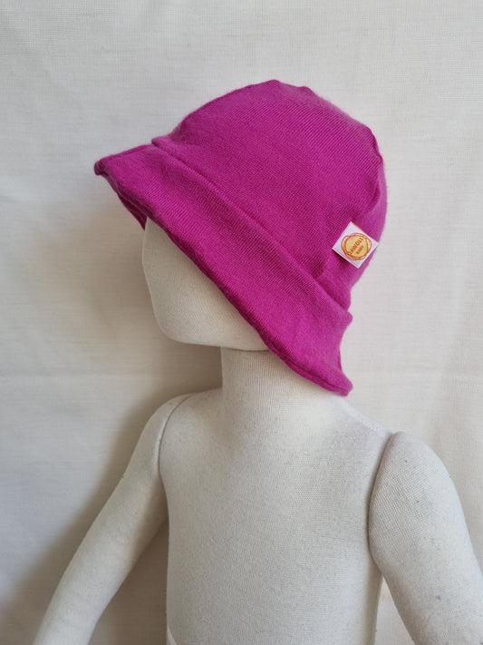 Sonnenhut Baby Kleinkind mit Nackenschutz aus 100 % Upcycling Merinowolle in Pink verschiedene Größen