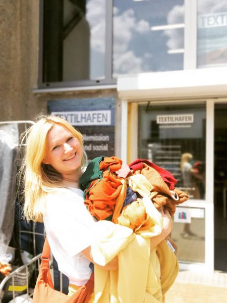 Eben diese unglaubliche Masse an Altkleidern wird unter anderem an die Berliner Stadtmission gespendet. Viele Kleidungsstücke sind bereits beschädigt, sodass sie nicht an Bedürftige oder Kiezläden weiter gegeben werden können. Diese Textilien werden aussortiert, im dortigen Materialpool gesammelt und für Upcycling zur Verfügung gestellt. Vom Materialpool beziehe ich den Großteil der Wollpullover, aus denen die Jawoll Teile entstehen. Das Material kaufe ich zum Kilopreis auf, wodurch sich die Stadtmission refinanzieren kann.