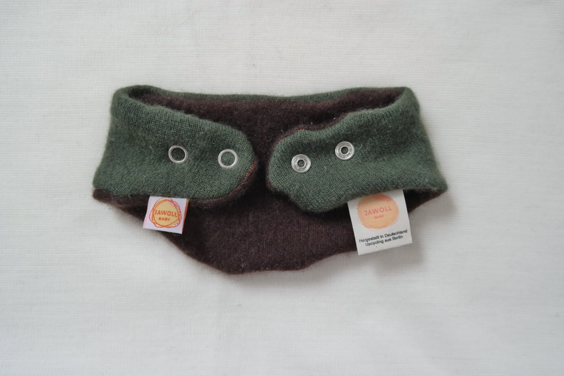 Dreieckstuch Schal mitwachsend wendbar für Babys aus Upcycling Kaschmir in Braun und Dunkelgrün