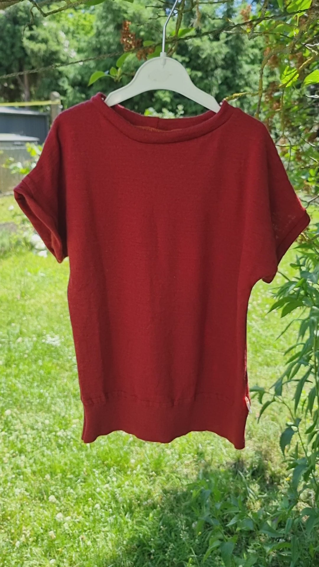 T-Shirt für Kinder 122/128 aus leichter Upcycling Merinowolle in Masala Rot