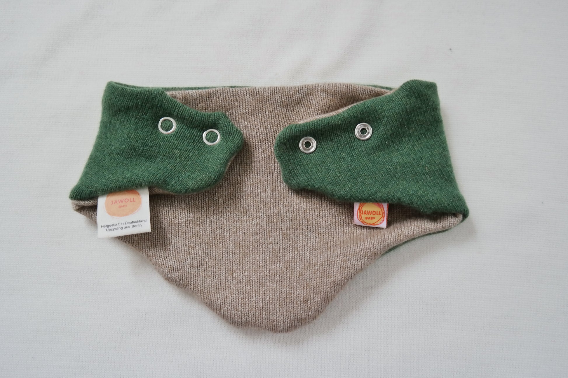 Tuch Schal mitwachsend und wendbar für Kinder aus Upcycling Kaschmir und Seide in Beige und Grün
