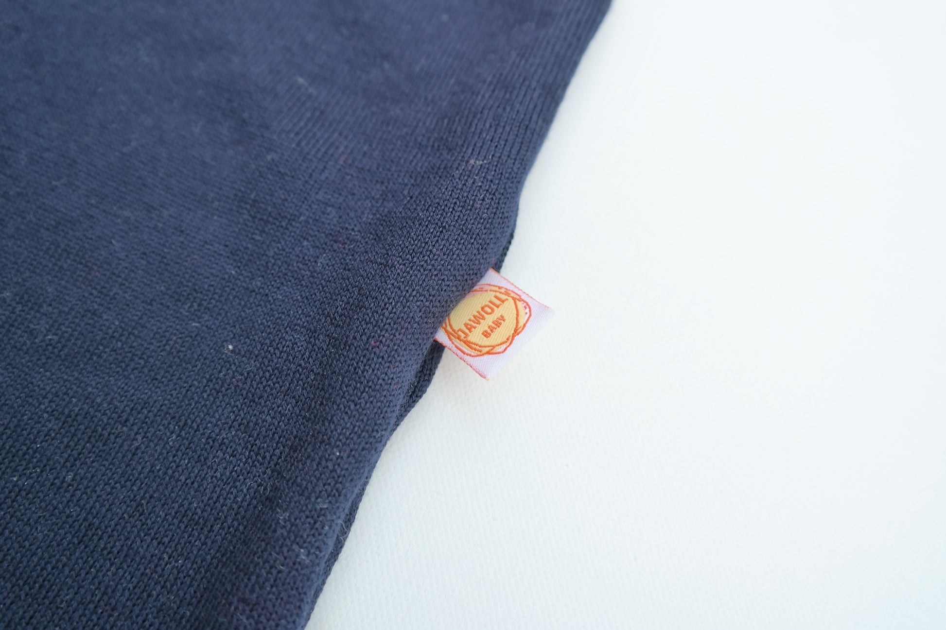 Der orange Faden von Jawoll Baby: Wolle ist biologisch abbaubar – Garn aus Polyester nicht. Ist dieser Nutzungszyklus des Textils zu Ende, siehst du durch die orangen Nähte auf den ersten Blick, wo du Faden und Wolle trennen und damit ein Recycling ermöglichen kannst. Denn nur getrennte Materialien sind über den Hausmüll recycelbar.