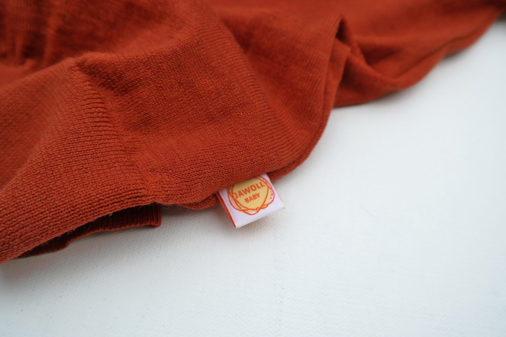 Der orange Faden von Jawoll Baby: Wolle ist biologisch abbaubar – Garn aus Polyester nicht. Ist dieser Nutzungszyklus des Textils zu Ende, siehst du durch die orangen Nähte auf den ersten Blick, wo du Faden und Wolle trennen und damit ein Recycling ermöglichen kannst. Denn nur getrennte Materialien sind über den Hausmüll recycelbar.