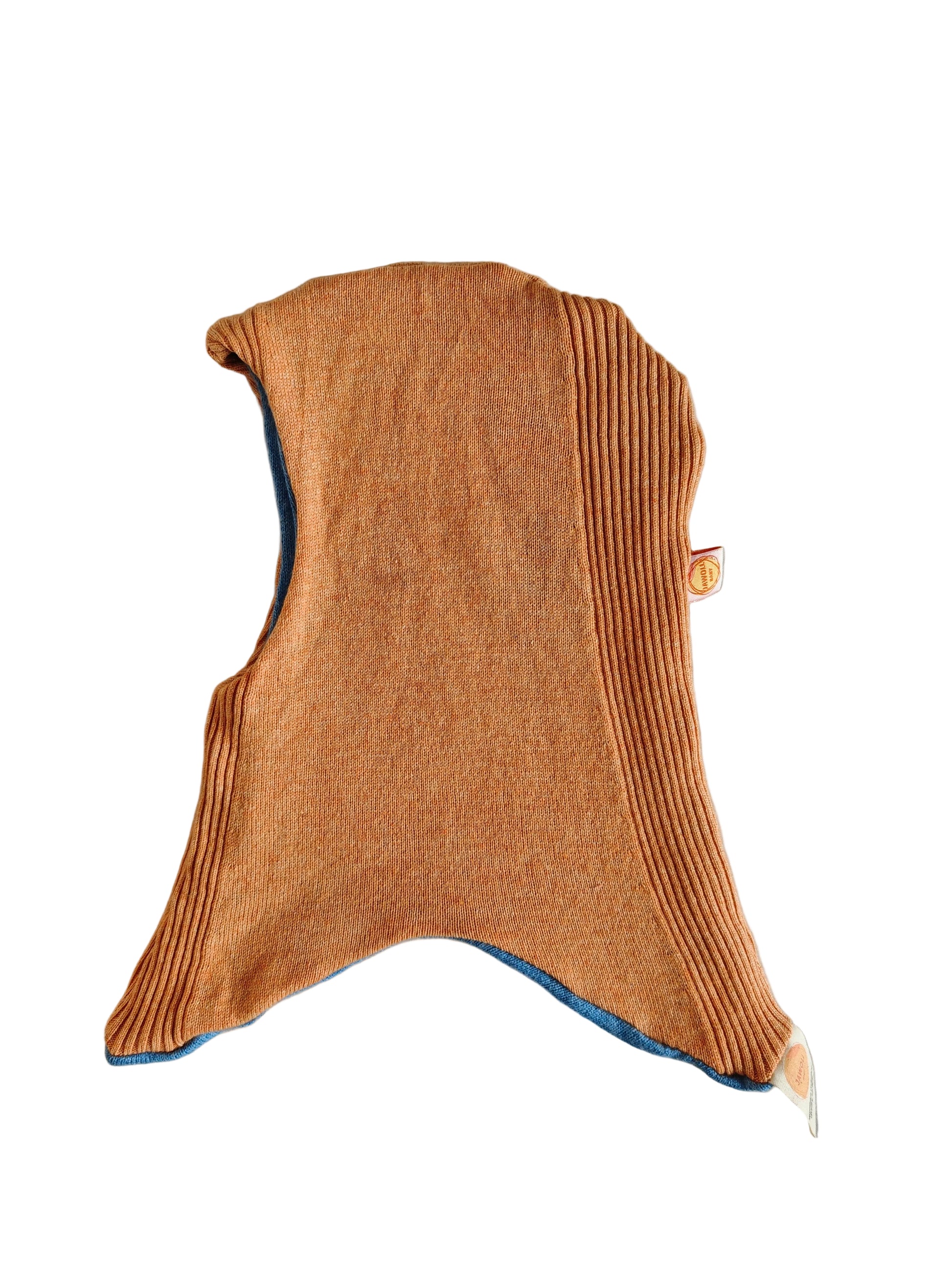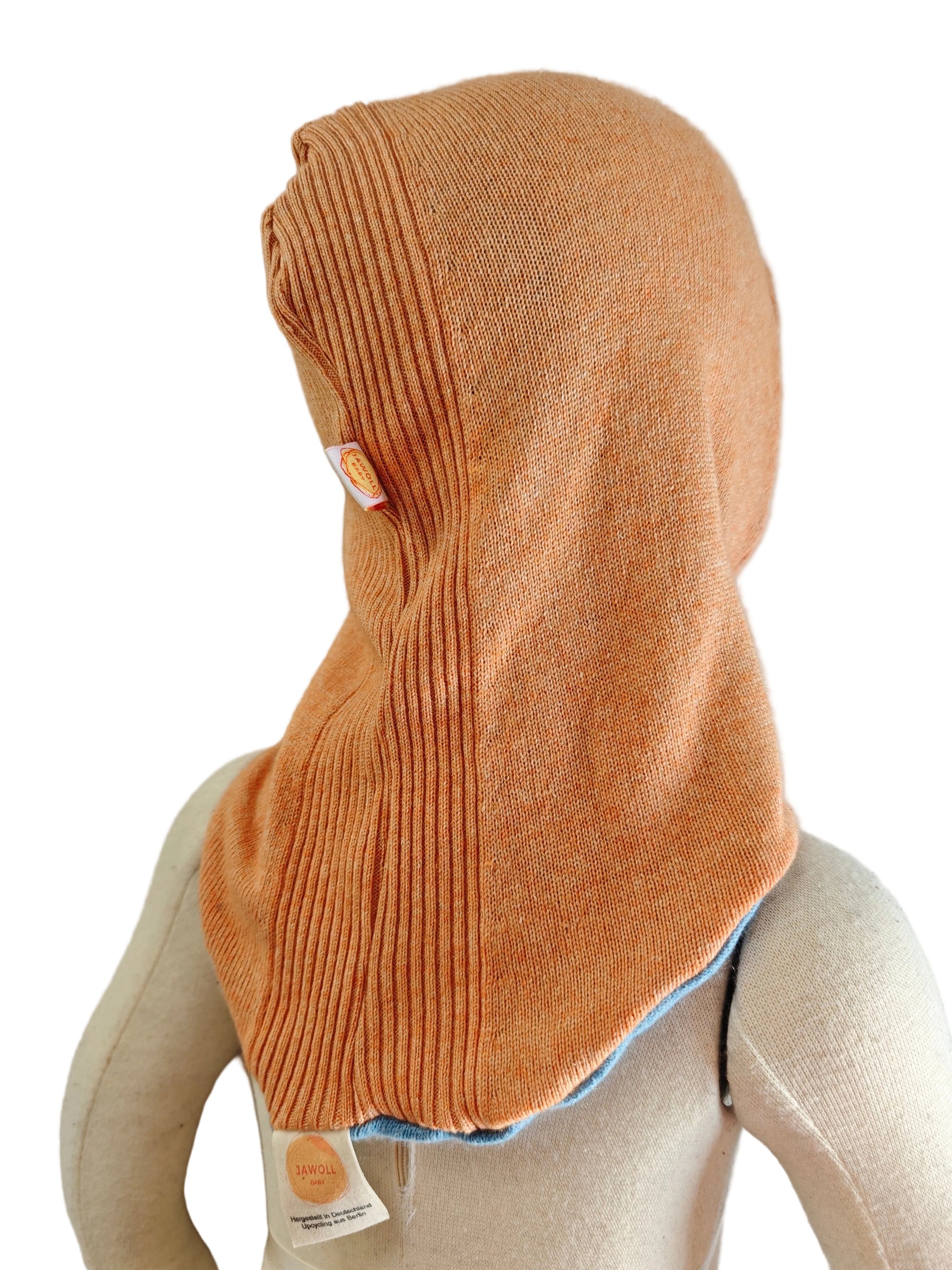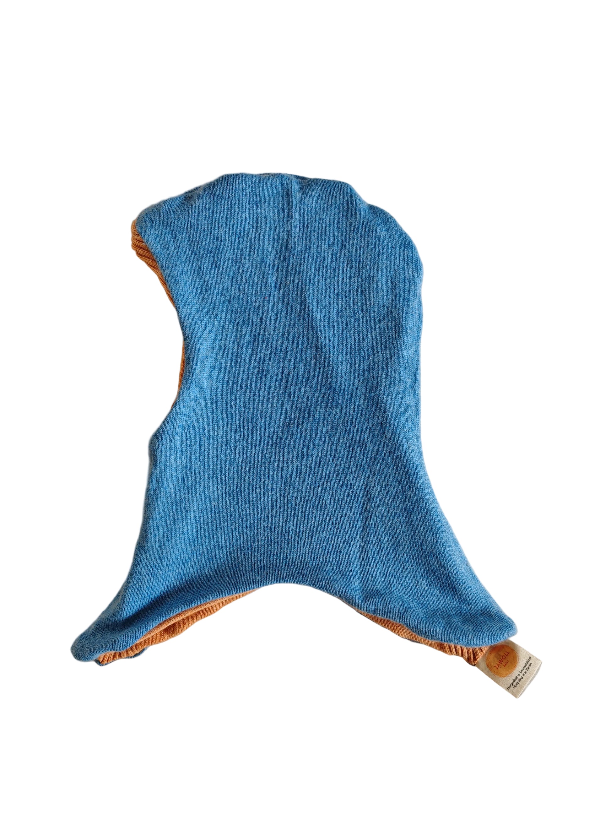 Wende-Schlupfmütze für Babys KU 43 - 48 aus Upcycling Seide & Kaschmir in Hellblau und Pfirsichorange
