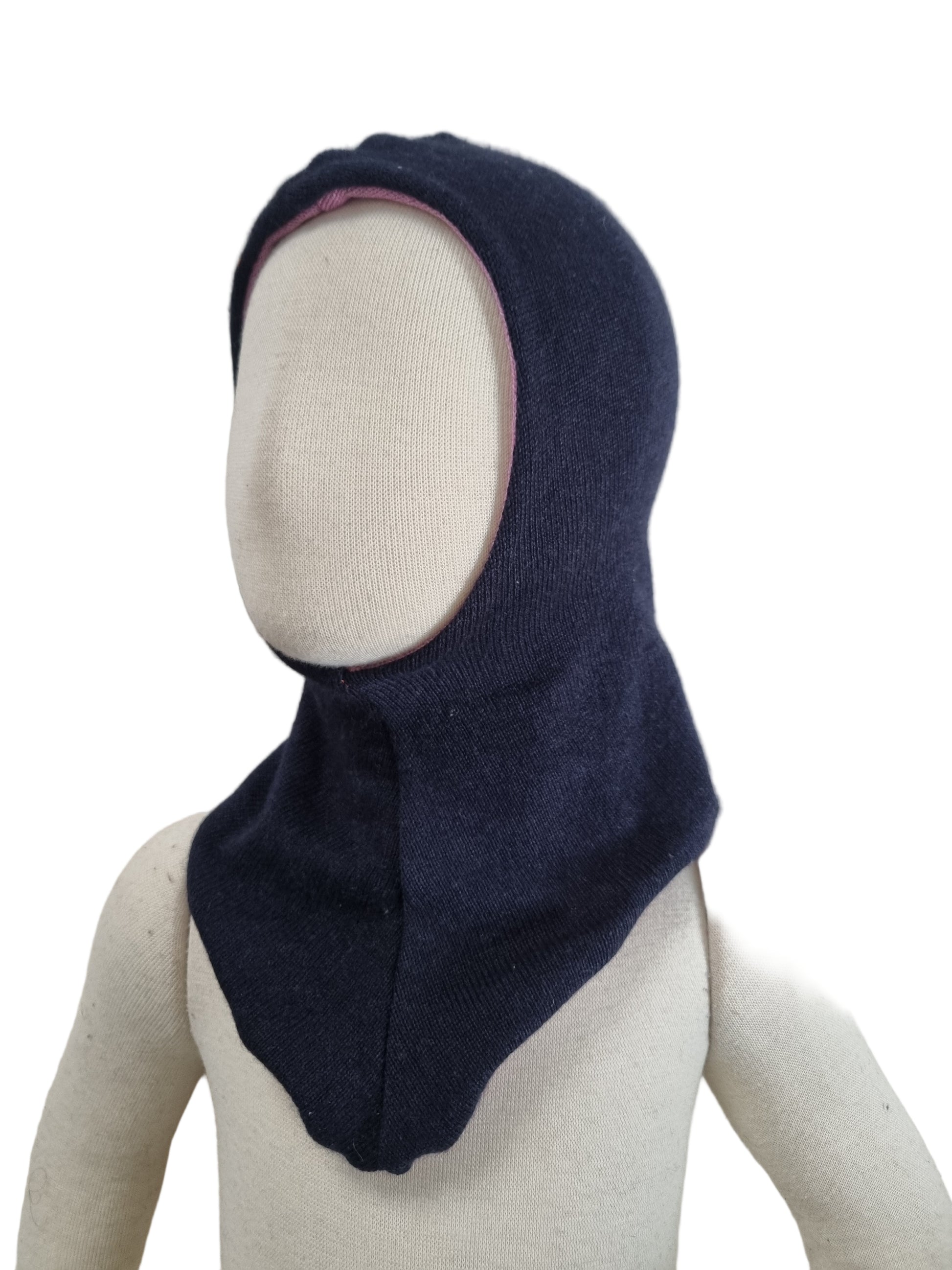 Wende-Schlupfmütze für Babys KU 43 - 48 aus Upcycling Seide & Kaschmir Rosa und Dunkelblau