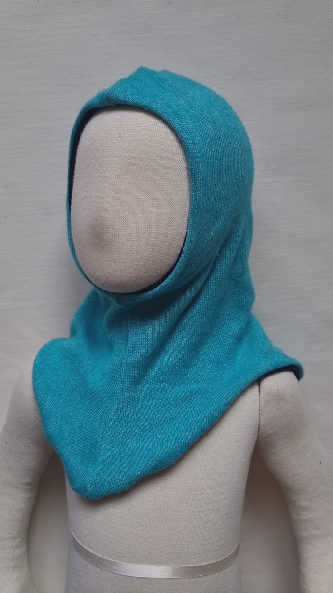 Wende-Schlupfmütze für Kleinkinder KU 49-51 aus Upcycling Seide & Kaschmir in Türkis und Dunkelblau